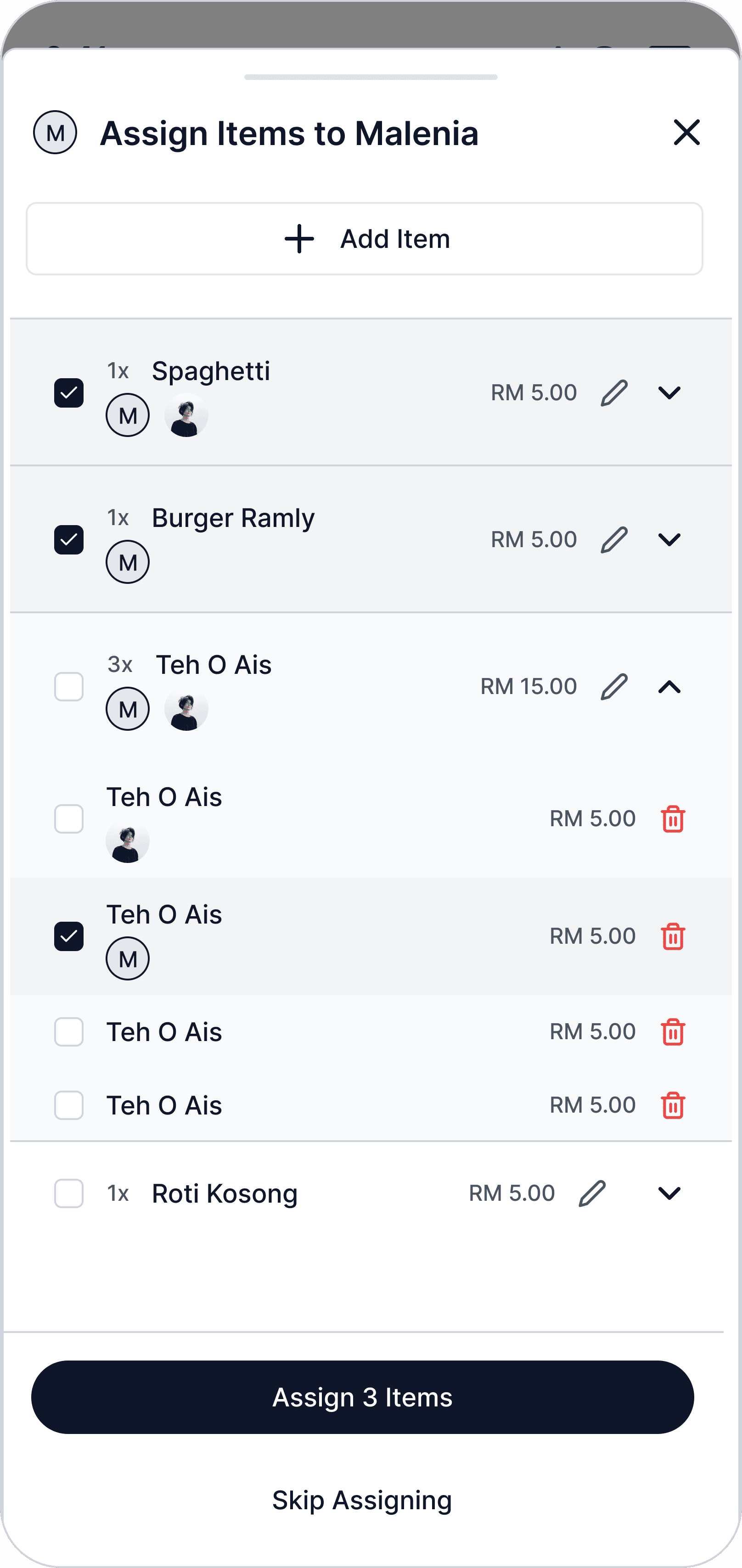 Assigning items